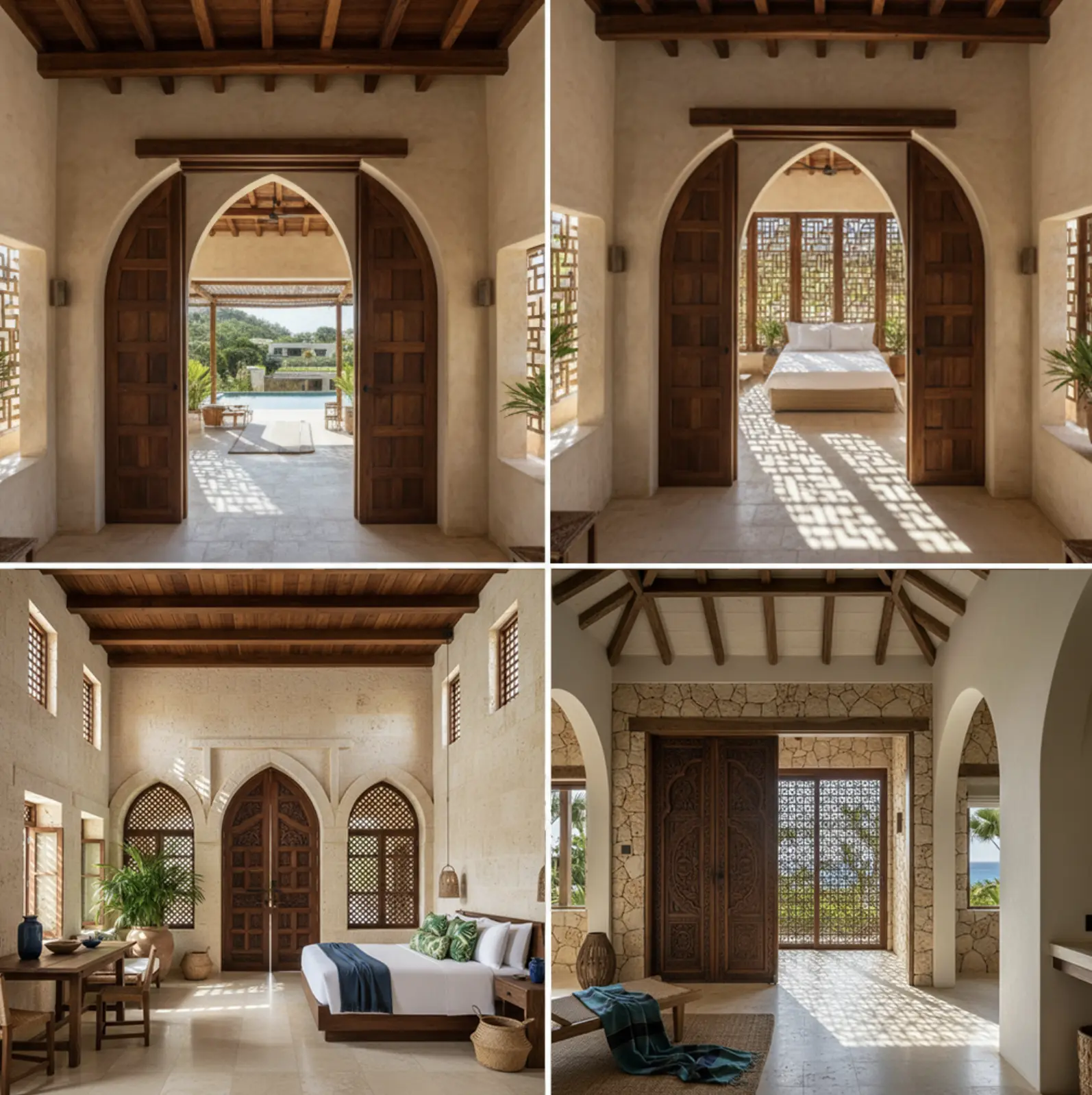 يستمد التصميم الداخلي لفندق سواهيلي إلهامه من العمارة السواحيلية والإسلامية التقليدية، ليخلق أجواء دافئة وغنية بالهوية الثقافية. تتميز المساحات بأقواس أنيقة، وتفاصيل خشبية يدوية الصنع، وجدران ذات ملمس يعكس عمق التراث والانتماء.